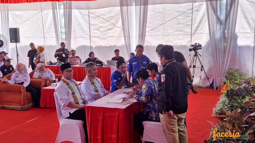 Setelah proses pemberkasan usai, pasangan Khairul-Ibnu melakukan konfresi pers bersama puluhan awak media.