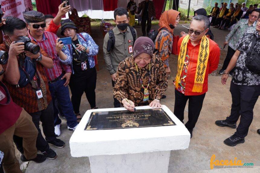 NUNUKAN – Janji Menteri Sosial Tri Rismaharini ditunaikan di Desa Atap, Kecamatan Sembakung, Kabupaten Nunukan. Selasa (24/1) didampingi Anggota DPR RI Deddy Yevri Hanteru Sitorus, Risma meresmikan instalasi pengelolaan air bersih, bangunan sekolah SMA 1 Atap dan penyerahan bus sekolah.