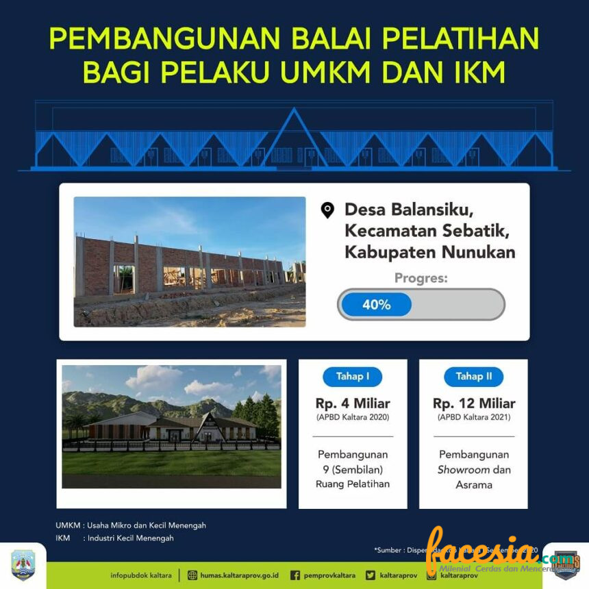 TANJUNG SELOR – Pemerintah Provinsi (Pemprov) Kalimantan Utara (Kaltara) melalui Dinas Perindustrian, Perdagangan, Koperasi, Usaha Kecil dan Menengah (Disperindagkop-UKM) membangun balai pelatihan bagi para pelaku usaha mikro kecil dan menengah (UMKM) dan industri kecil menengah (IKM) di Kaltara.
