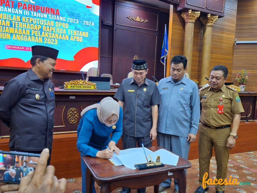 “Penghargaan dan ucapan terima kasih juga kami sampaikan kepada fraksi fraksi yang telah menyampaikan pendapat akhirnya terhadap laporan keuangan Pemerintah Daerah tersebut sebagai penjabaran dan tindak lanjut laporan badan anggaran DPRD Kabupaten Nunukan yang pada intinya dapat menerima dengan baik Laporan Keuangan Pemerintah Daerah (LKPD) Pemerintah Kabupaten Nunukan Tahun Anggaran 2023, serta menyetujui untuk disahkannya Rancangan Peraturan Daerah (Ranperda) tentang pertanggungjawaban pelaksanaan Anggaran Pendapatan dan Belanja Daerah (APBD) Kabupaten Nunukan tahun anggaran 2023 menjadi Peraturan Daerah tentang pertanggungjawaban pelaksanaan APBD Kabupaten Nunukan Tahun Anggaran 2023,” ucapnya.