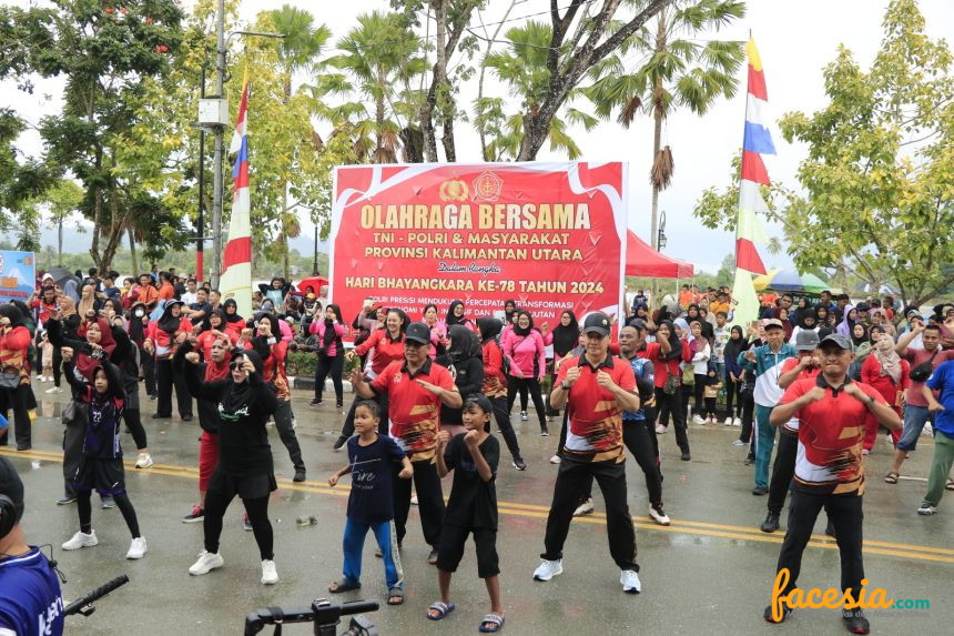 TANJUNG SELOR – Masih dalam rangkaian Hari Ulang Tahun Bhayangkara ke 78, Kepolisian Daerah Kalimantan Utara (Polda Kaltara) menggelar kegiatan Jalan Santai dan Senam Bersama yang dimulai di depan Hotel Pangeran Khar, Ahad (30/6) Pagi