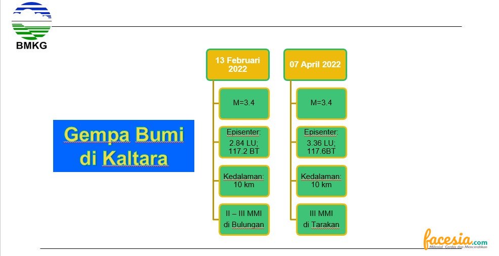 Selanjutnya memasuki penjelasan kejadian gempa bumi di Kaltara tercatat ada dua kali kejadian gempa bumi. Pertama tanggal 13 Februari dengan magnitude 3,4 SR dan kedalaman 10 KM dengan episentrum berada di Bulungan.