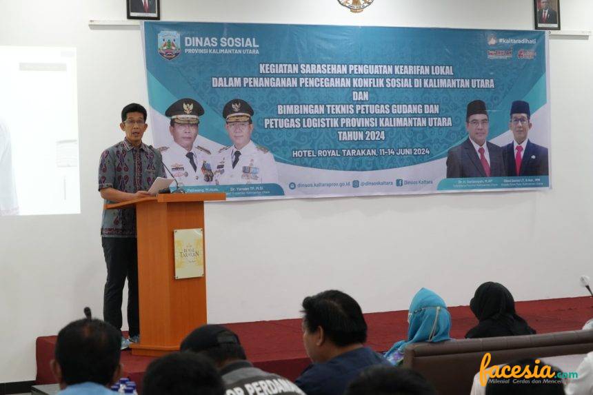 TARAKAN – Dinas Sosial Provinsi Kalimantan Utara (Kaltara) melaksanakan kegiatan sarasehan penguatan kearifan lokal dalam penanganan pencegahan konflik sosial di Kaltara dan bimbingan teknis (Bimtek) petugas gudang dan petugas logistik Provinsi Kaltara tahun 2024 di Hotel Royal Tarakan, Rabu (12/6).
