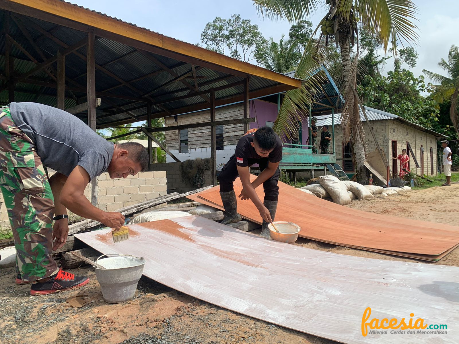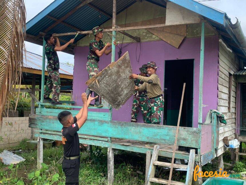 TARAKAN – Sinergitas TNI Polri di TMMD Ke-116 Kodim 0907/Tarakan Tampak jelas terlihat pada setiap kegiatan. Nampak para personel bahu membahu dalam merehab rumah salah satu rumah di RT 04 Kelurahan Pantai Amal, Kecamata Tarakan Timur, Selasa (16/05/2023).