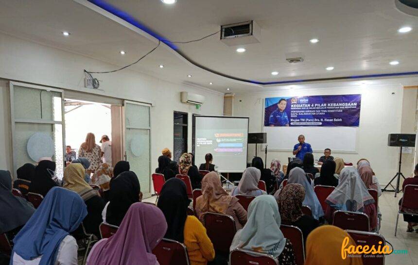 NUNUKAN – Mayor Jenderal TNI (Purn) Drs. Hasan Saleh menggelar sosialisasi 4 pilar kebangsaan di New Lenfin Hotel, Kabupaten Nunukan, Kalimantan Utara, Minggu (18/5/2025). Kegiatan ini dihadiri para tokoh masyarakat, tokoh agama dan masyarakat sekitar sebagai peserta.
