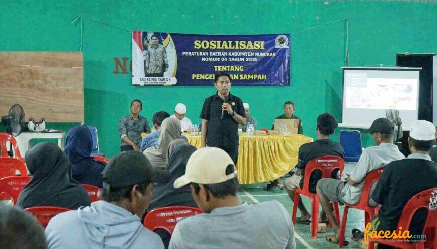 NUNUKAN – Anggota DPRD Kabupaten Nunukan, Andi Fajrul Syam, SH, menggelar sosialisasi Peraturan Daerah (Perda) Nomor 04 Tahun 2019 tentang Pengelolaan Sampah. Kegiatan ini berlangsung Jumat (30/5/25) malam, di Gedung Serbaguna Kelurahan Mamolo, Kecamatan Nunukan Selatan.