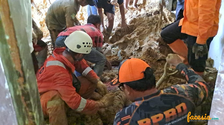 Peristiwa ini mengakibatkan tiga warga setempat, Mina (36) dan Arfan (8) dan Anselmus (45), dilaporkan tertimbun longsoran tanah.