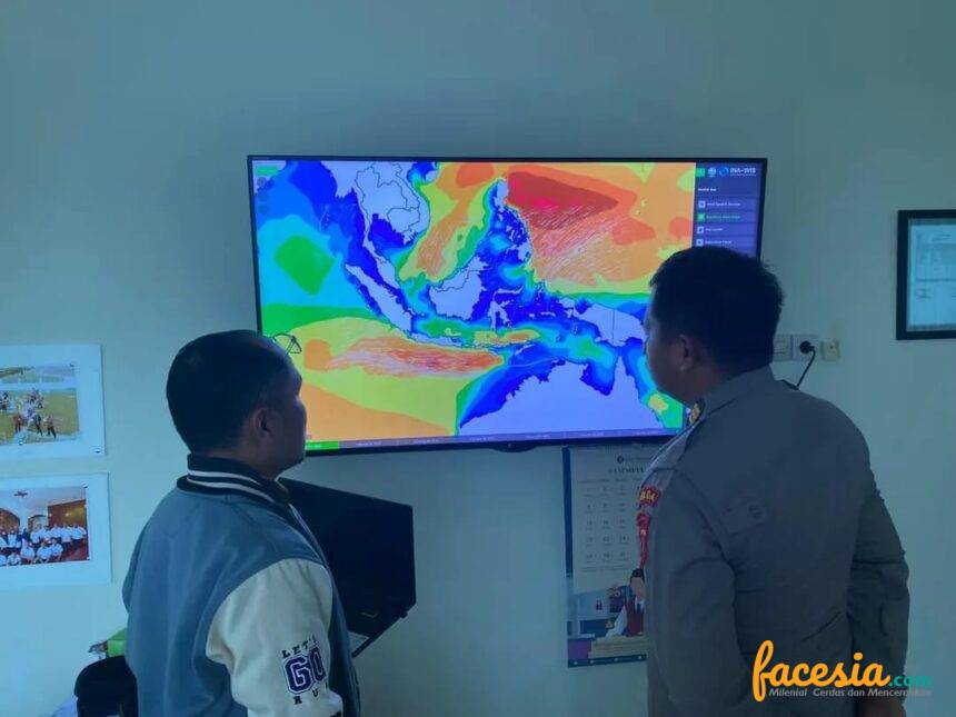 Kasi Sarbinmas Air Ditpolairud, Akp M. Aris Kelana, S.T.K., S.I.K., dan Kasi Patwal Airud, Iptu Yazwar, S.E., S.H., M.HP., melakukan koordinasi dengan Badan Meteorologi, Klimatologi, dan Geofisika (BMKG) serta Unit Pelaksana Teknis Daerah (UPTD) Pelabuhan Tengkayu I.