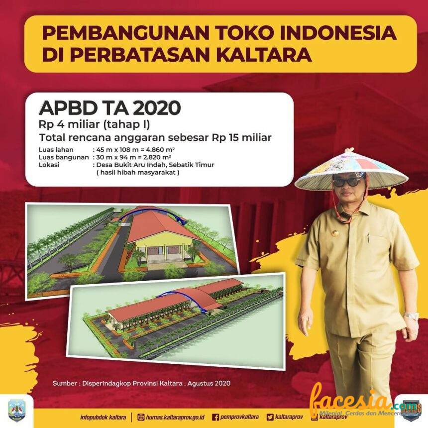 Disebutkannya, bangunan Toko Indonesia akan seluas 2.820 meter persegi (30 m x 94 m). “Lokasinya di Desa Bukit Aru Indah, Sebatik Timur, ini hasil hibah masyarakat. Luas lahan 4.860 meter persegi,” ujarnya.