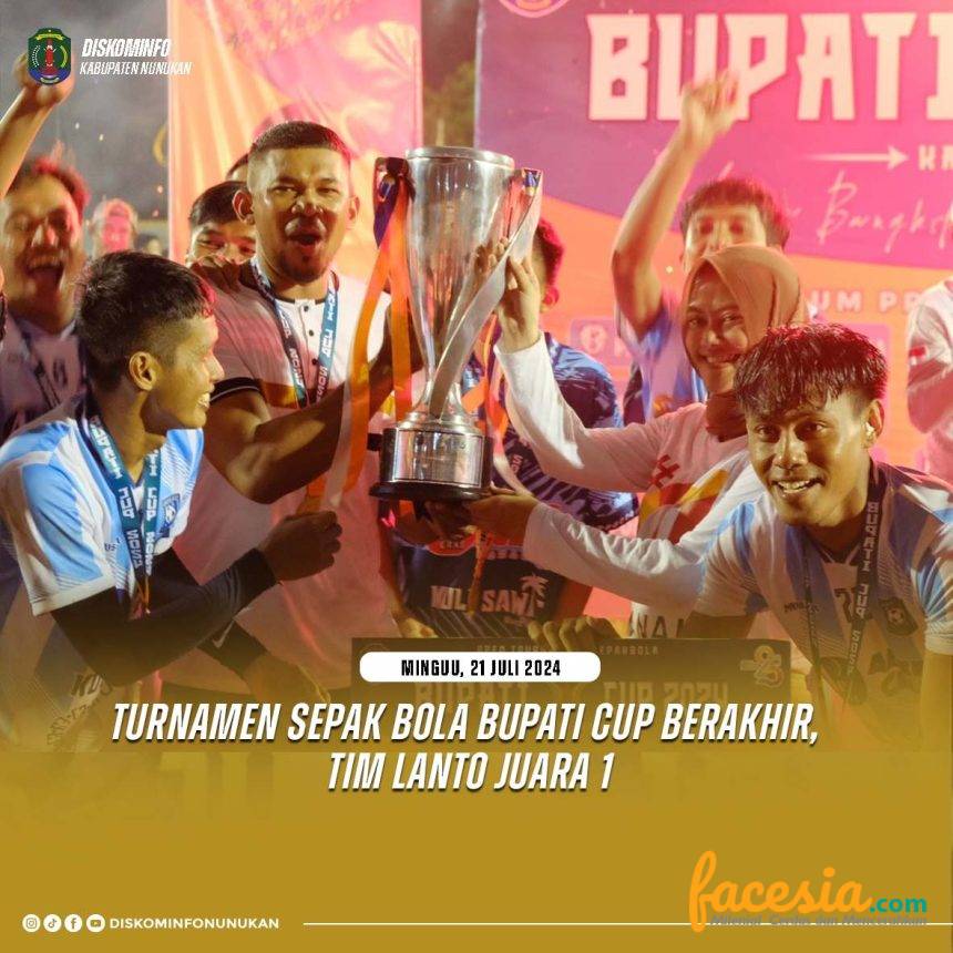 NUNUKAN – Turnamen Sepak Bola Bupati Cup Tahun 2024 telah berakhir, tim Lanto berhasil menjinakkan si kulit bundar hingga meraih juara 1. Turnamen yang berlangsung selama 1 bulan resmi ditutup oleh Bupati Nunukan Asmin Laura Hafid di Stadion Sei Bilal, Minggu malam (21/07/2024).