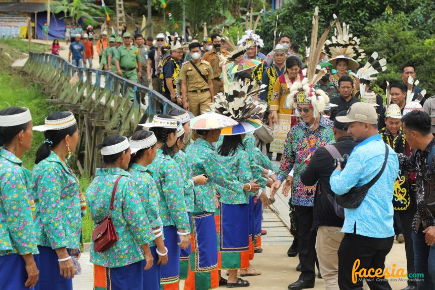 DISAMBUT HANGAT : Wakil Gubernur Kaltara, Dr Yansen TP, M.Si disambut hangat masyarakat Desa Long Bang, Kabupaten Bulungan, Senin (18/7).
